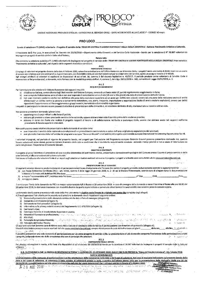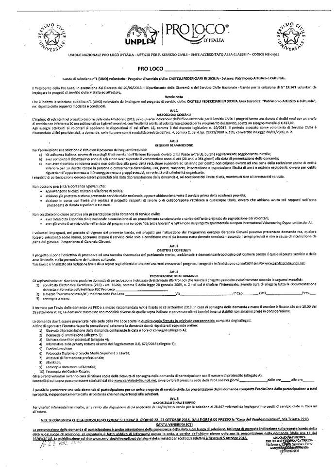 L' UNPLI Pro Loco d' Italia ha presentato i progetti per il Servizio Civile Nazionale 2018.